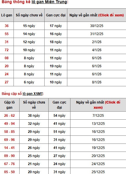 Thống kê số lô gan lâu về: 36 55 31 72 08 20 24 27